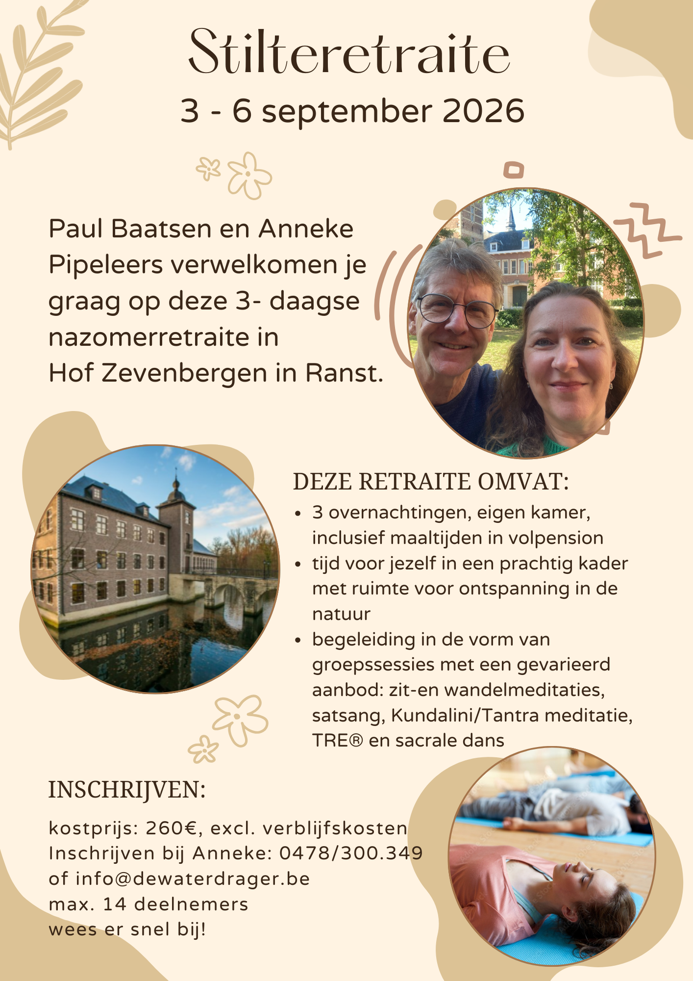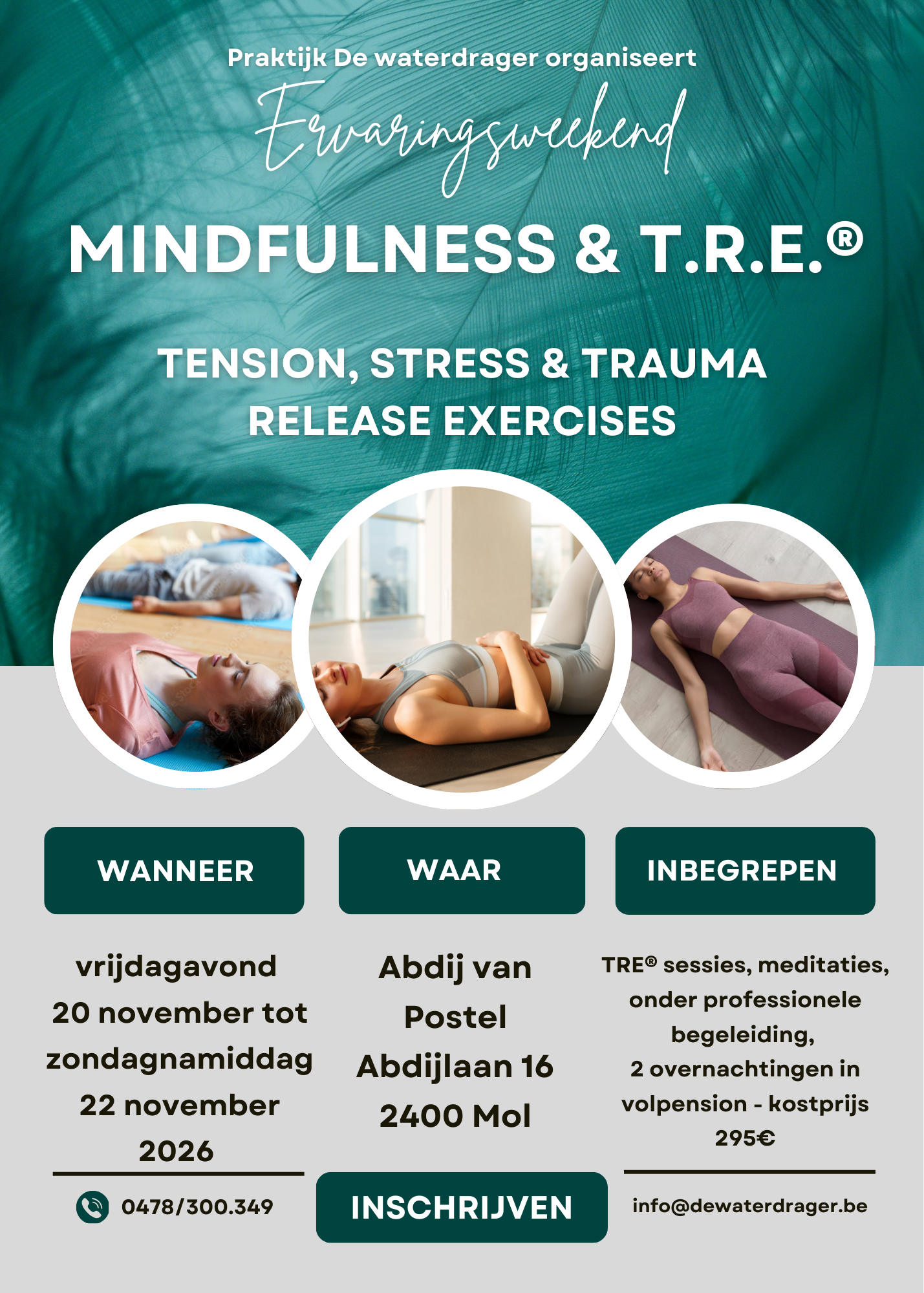 Twee keer per jaar worden er weekends georganiseerd: een stilte retraite, en een weekend TRE & mindfulness. Klik op een van de folders voor meer informatie.